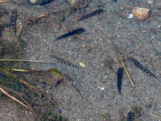 最後まで水の残っていた所に集まり、その水も無くなり、死んで積み重なっています。